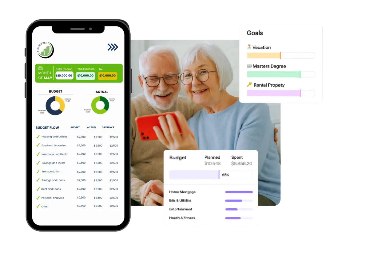 Create personalized goals, track your progress in real time, and celebrate every milestone along the way — all within your Finance 360 dashboard.