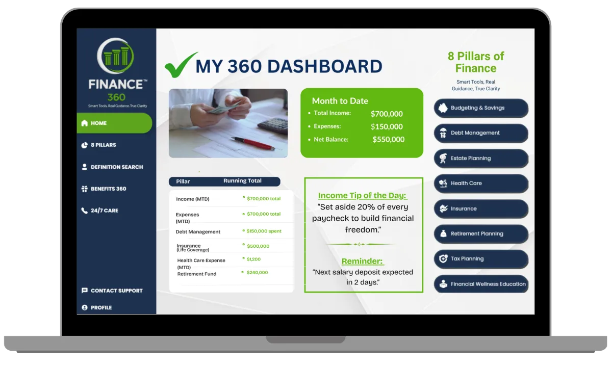 Finance 360 brings all your financial data together so you can see your full picture, stay organized, and make confident decisions every day.